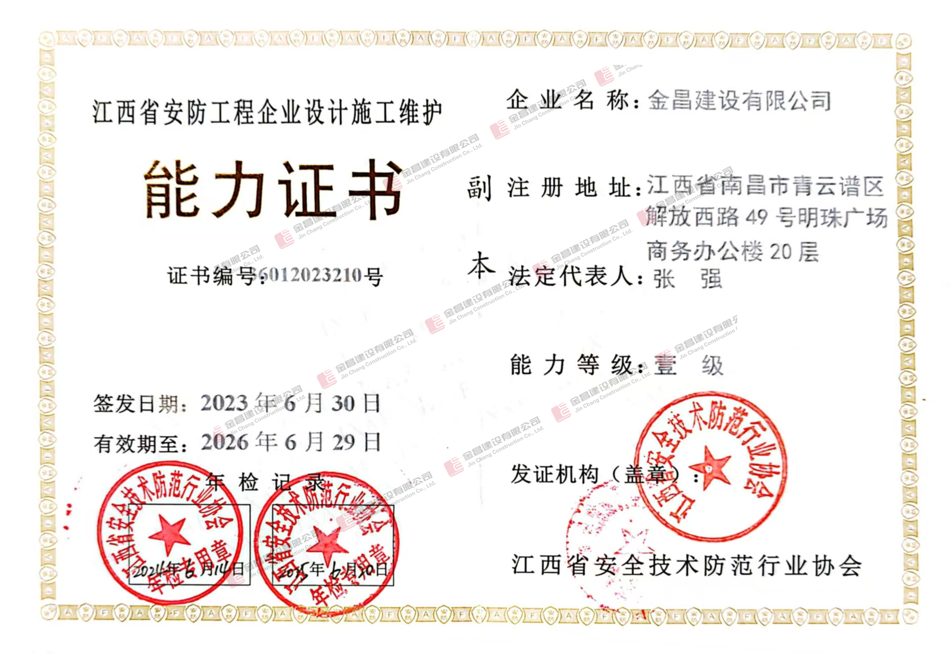 安防工程企業(yè)設計施工維護能力證書